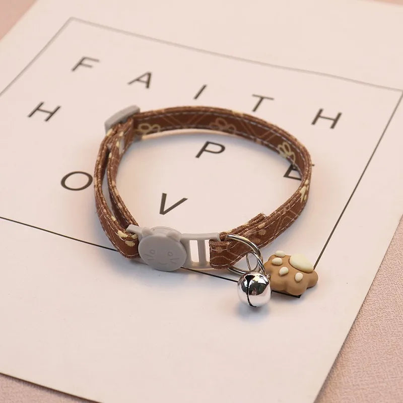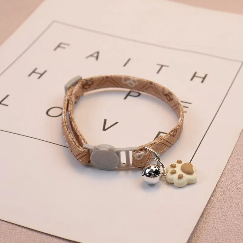 Pet Collar With Bell Cartoon Footprint Colorful Dog Puppy Kitten Collar Adjustable Safety Bell Ring Necklace Pet Accessories
